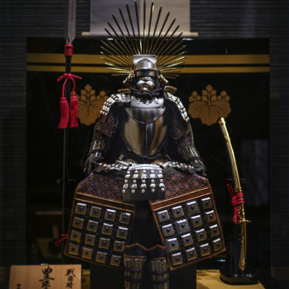 また、丸形は刀のつばをイメージしており、それ自体が日本刀を表現している。